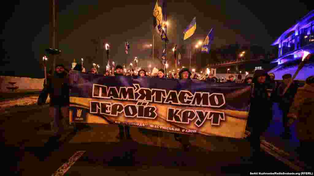 По закінченню реконструкції від Арсенальної площі до Аскольдової могили пройшов смолоскиповий марш до Дня пам'яті Героїв Крут.