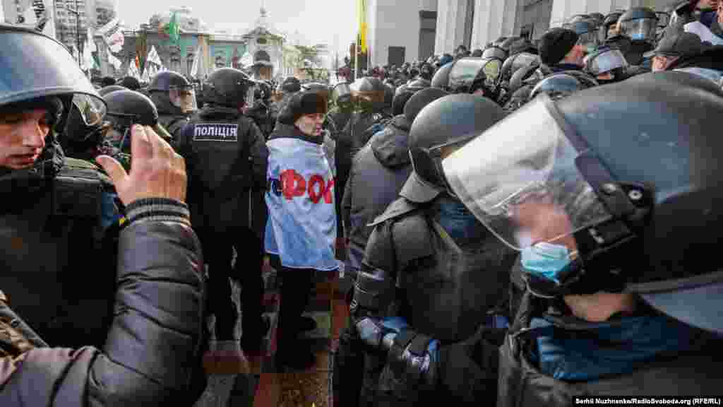 Потім мітингарі зламали паркан і намагалися штурмувати парламент. Правоохоронці їм перешкодили. Відбулися затримання.