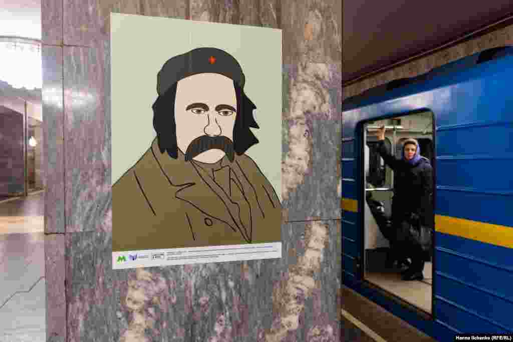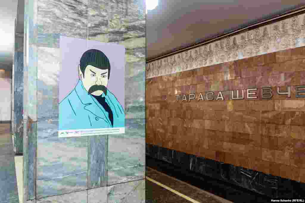У київському метро відкрилася виставка «Квантовий стрибок», присвячена українському поету Тарасу Шевченку.