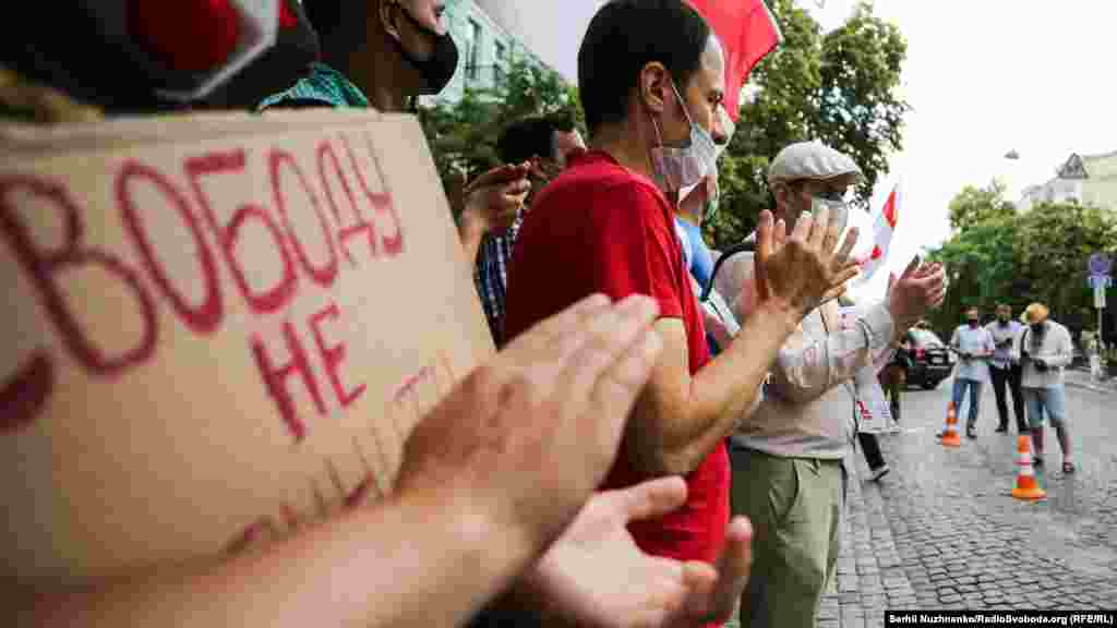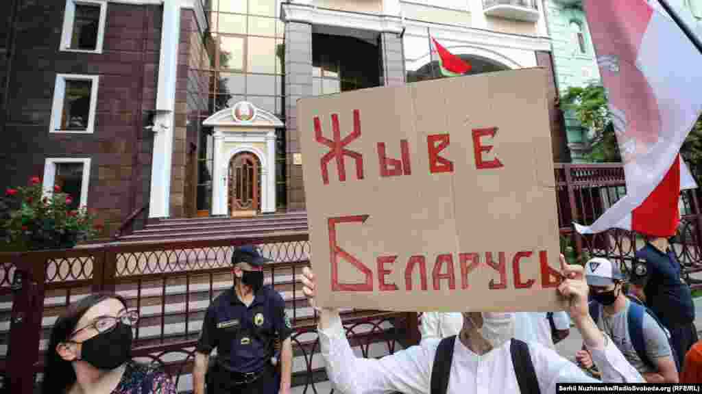 23 червня біля посольства Білорусі в Києві кілька десятків українців та білорусів, які живуть в Україні, мітингували проти політичних репресій і переслідувань у Білорусі й вимагали підтримати право білорусів на демократичні вибори.