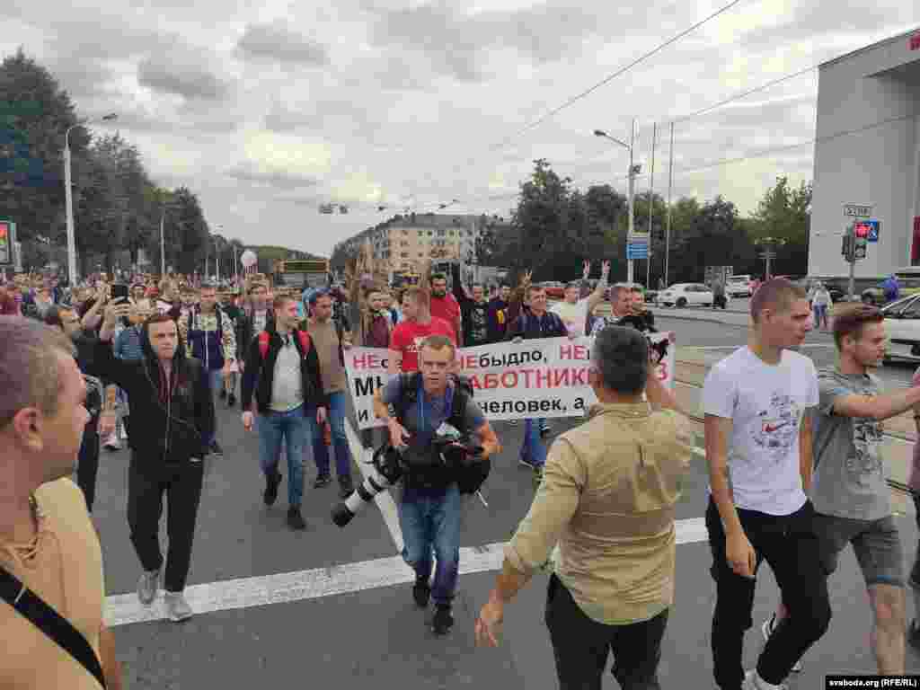 У Білорусі 14 серпня біля входу на Мінський тракторний завод (МТЗ) відбувся мітинг робітників. Прем'єр-міністр Раман Галучанка прибув на МТЗ, але він проігнорував протестувальників на площі перед заводом і пішов до адміністрації. Тоді робітники рушили ходою до Будинку уряду.