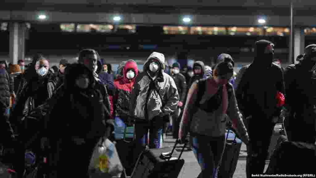 На Центральному залізничному вокзалі Києва кілька годин перевіряли потяг «Чотири столиці», який прибув із Риги, в рамках евакуації громадян України. Пасажирів не випускали з потяга близько чотирьох годин. У потязі перебувало близько 650 пасажирів, у декількох із них було виявлено підвищену температуру, їх забрала «швидка». Через це оформлення затягнулося.