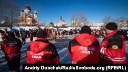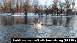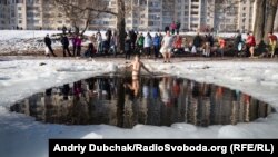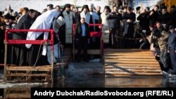 Віряни Української православної церкви Московського патріархату (згідно з нещодавними змінами у законодавстві – РПЦ в Україні) зібралися біля київського Свято-Покровського cобору. Традиційно, кожного року на цьому місці віряни проводять своє купання і освячення води на Водохреща. Одночасно біля ополонки збиралося по кілька сотень людей, при цьому, як повідомляє кореспондент Радіо Свобода, довго там ніхто не затримувався. Пірнули у воду, роз’їхалися, приїхали інші.