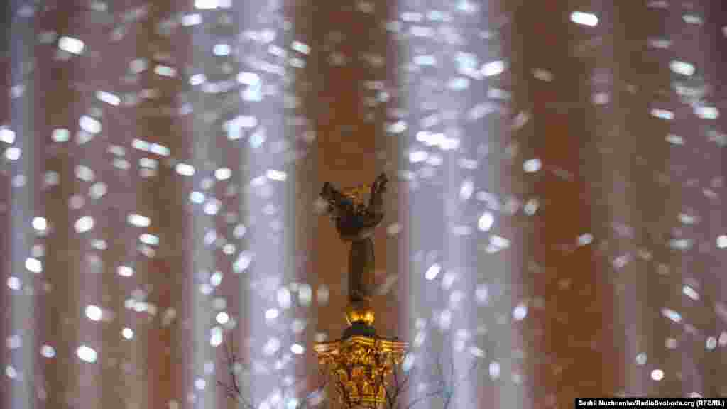 Промені випускали 120 проєкторів біля Меморіального комплексу героїв Небесної сотні, Жовтневого палацу і монументу Незалежності України.