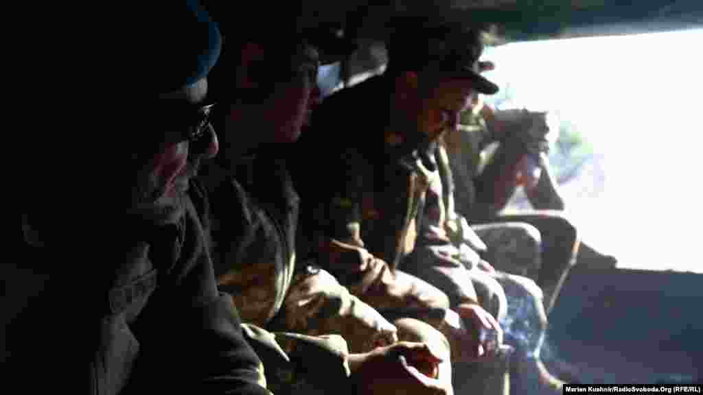 Вранці зі всіх позицій сходяться солдати до автомобілів і їдуть на дільницю.