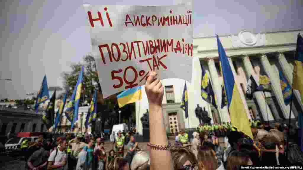 Вони привертали до себе увагу плакатами з вимогою включити до нового виборчого законодавства 50-відсоткову гендерну квоту. Не менш важливою вимогою вони висунули обов’язкове запровадження у виборчому законодавстві санкцій проти тих політичних сил, які порушують квотний принцип формування виборчих списків.