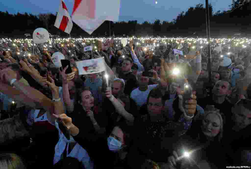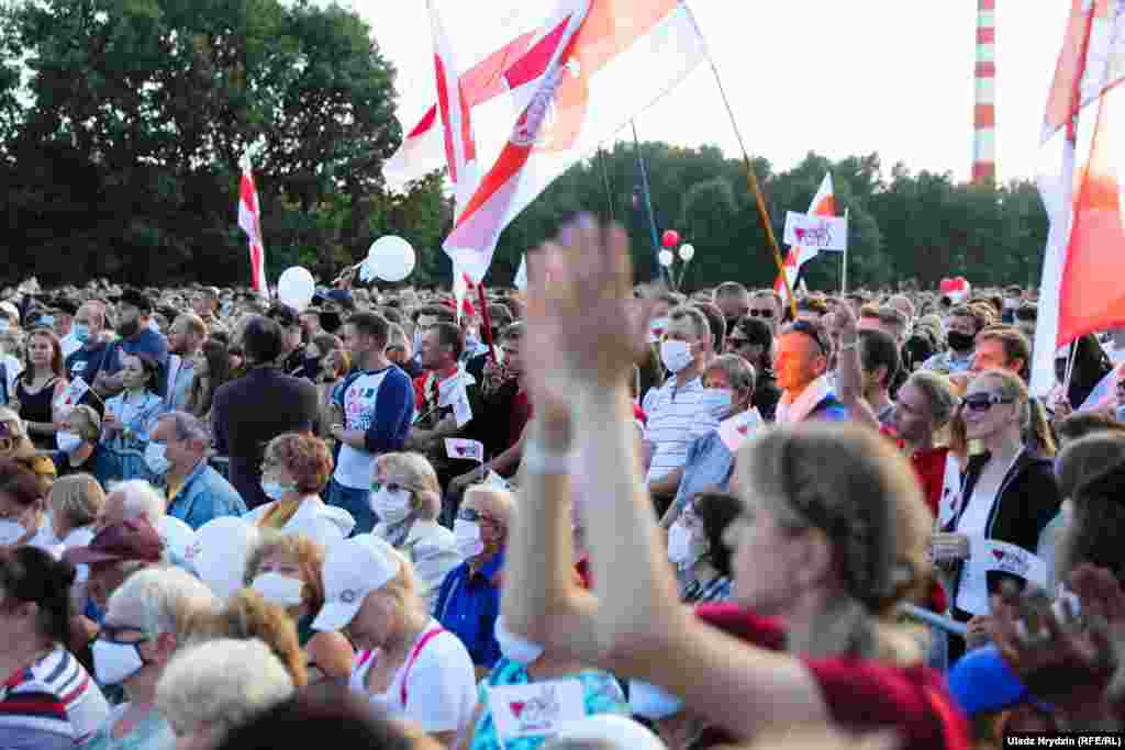У Мінську 30 липня в парку Дружби народів відбувся мітинг-концерт на підтримку опозиційної кандидатки у президенти Республіки Білорусь Світлани Тихановської. За даними волонтерської служби «Весна», у дозволеній передвиборчій акції взяли участь не менше 63 тисяч чоловік. Більше світлин з події – у фоторепортажі Білоруської редакції Радіо Вільна Європа/Радіо Свобода.