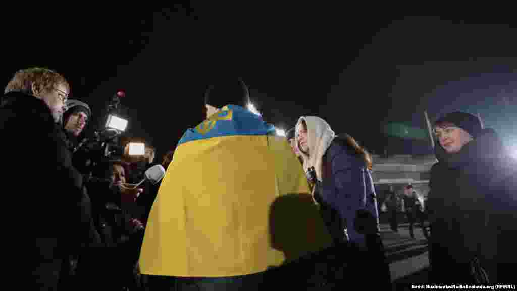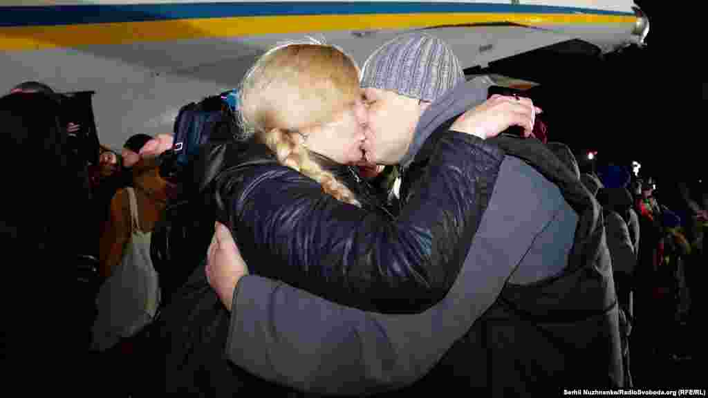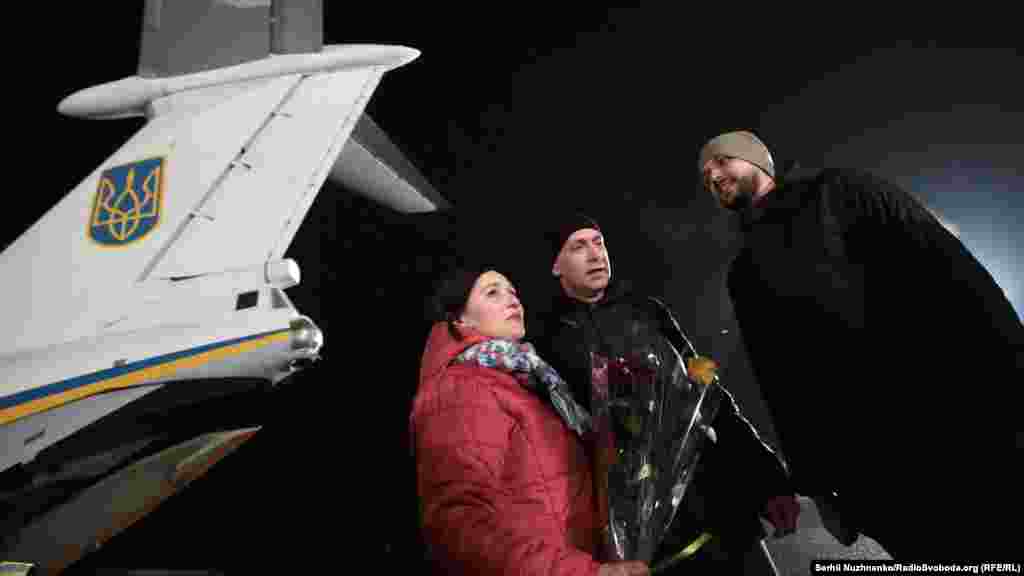 Літак зі звільненими в рамках обміну на Донбасі громадянами України приземлився в аеропорту «Бориспіль». Їх зустріли рідні й близькі, а також представники української влади, зокрема, президент Володимир Зеленський.