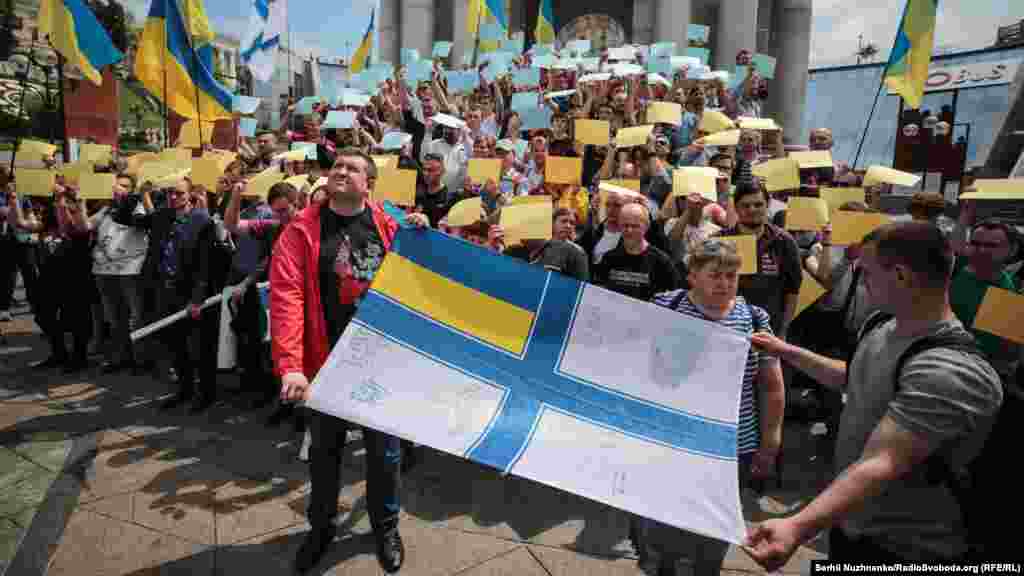 На Майдані Незалежності у Києві близько сотні людей вийшли на акцію, аби підтримати 24 українських моряків, яких захопили росіяни біля Керченської протоки у листопаді 2018 року.