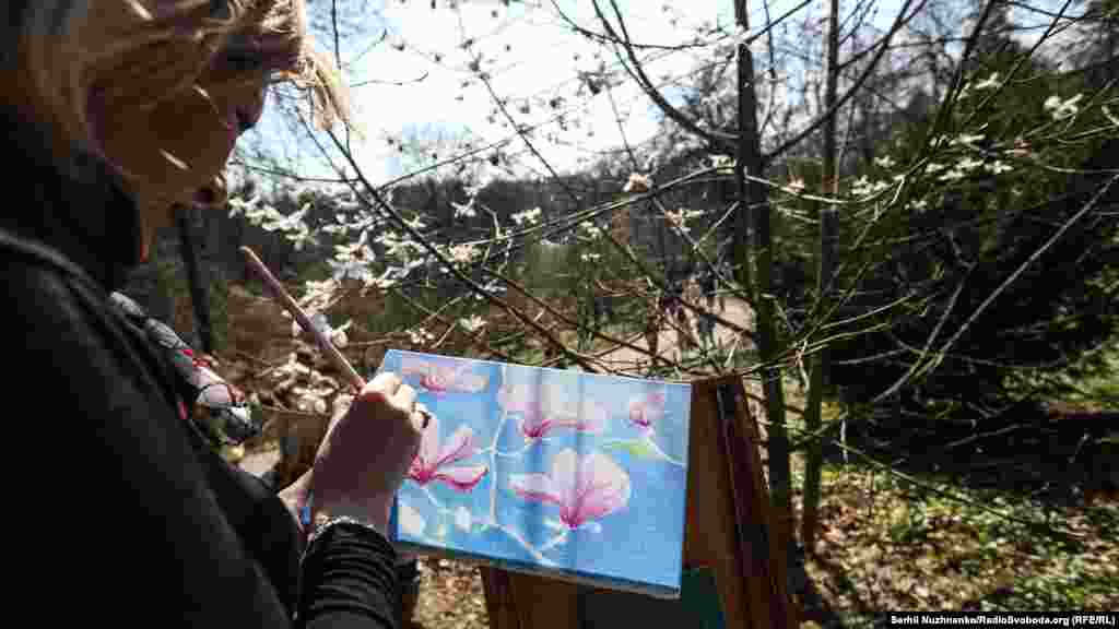 Відвідувачі саду насолоджуються ароматом, роблять «селфі» на тлі кущів, а художники малюють пейзажі з квітучими деревами прямо з натури.