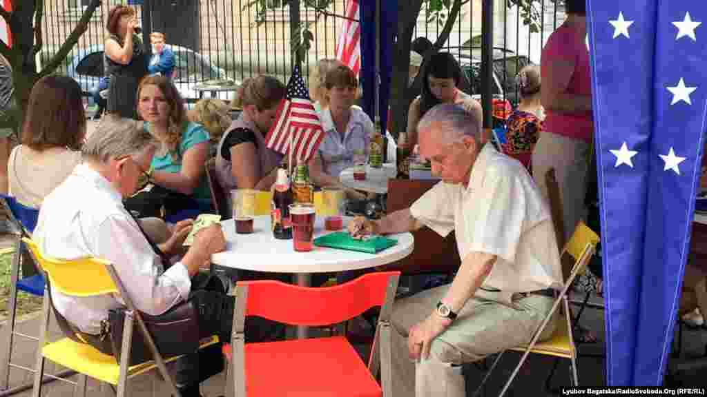 Цього року Американський дім у Києві організував свято 1 липня, у вихідний день для містян. Джаз, лінійні танці, жива музика, інтерактивна зона фото з костюмами, іграми на відкритому повітрі, призи і традиційне американське барбекю – усе це чекало на гостей вечірки. Участь у заході була безкоштовною, за умови надання паспорту або водійських прав особи.
