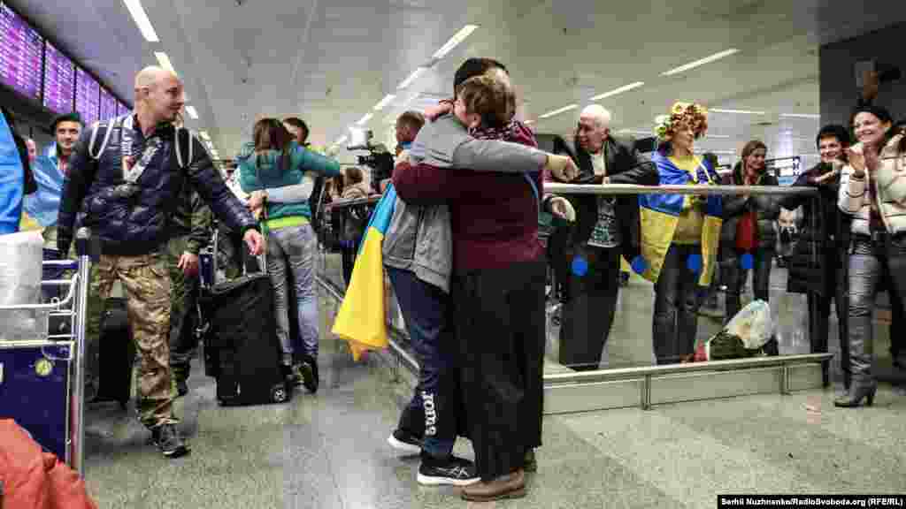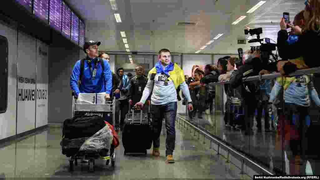До Києва з Вашингтона повернулися ветерани, які брали участь в 42-му Марафоні морської піхоти. В аеропорту «Бориспіль» на переможців чекали рідні, друзі та волонтери. Усього 10 ветеранів війни на Донбасі взяли участь у 42-му Марафоні морських піхотинців у Сполучених Штатах. П'ятеро з них пробігли 10 кілометрів, ще п'ятеро здолали 42 кілометри за менш як шість годин. І це при тому, що всі учасники української команди на війні отримали тяжкі поранення. Загалом у змаганні взяли участь 27 тисяч ветеранів різних війн із усього світу. Медалей марафон не передбачає.
