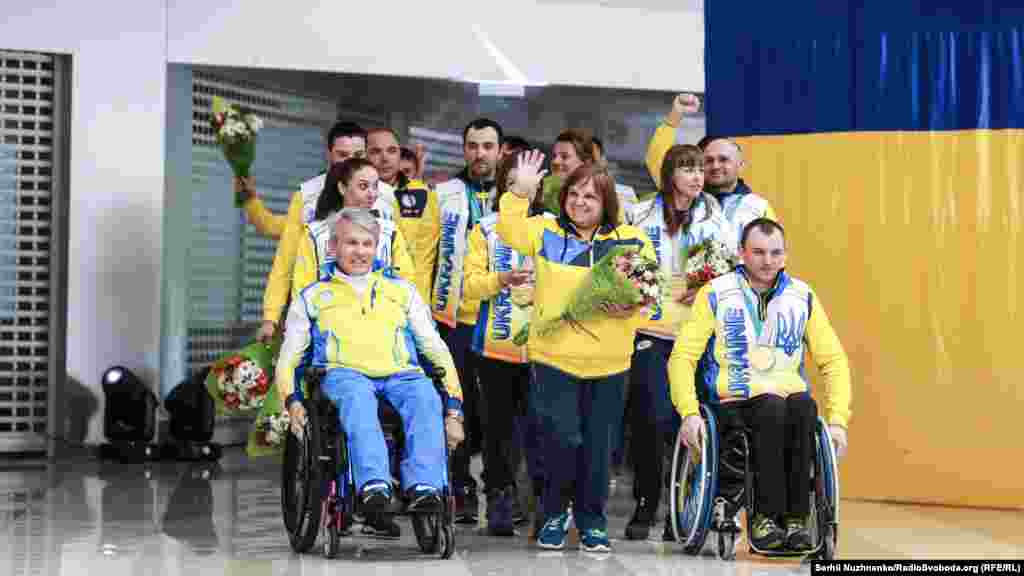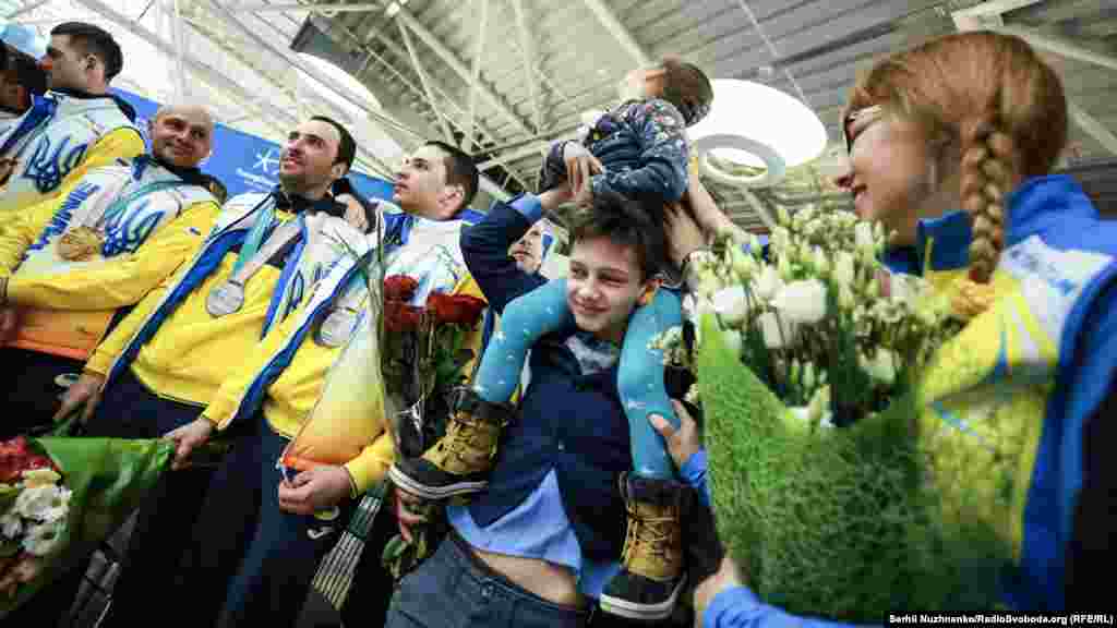 Чемпіонів і призерів зимових Паралімпійських ігор-2018 зустріли в київському аеропорту «Бориспіль» кульками, квітами, вітальними плакатами і теплими обіймами. Українська збірна привезла з Пхьончхана (Південна Корея) 22 медалі: 7 золотих, 7 срібних та 8 бронзових.