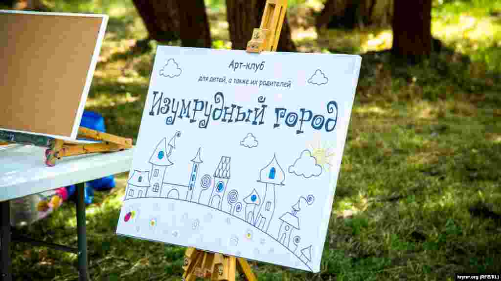 У парку встановили сцену з написом «Молодь – майбутнє Росії» і російським прапором
