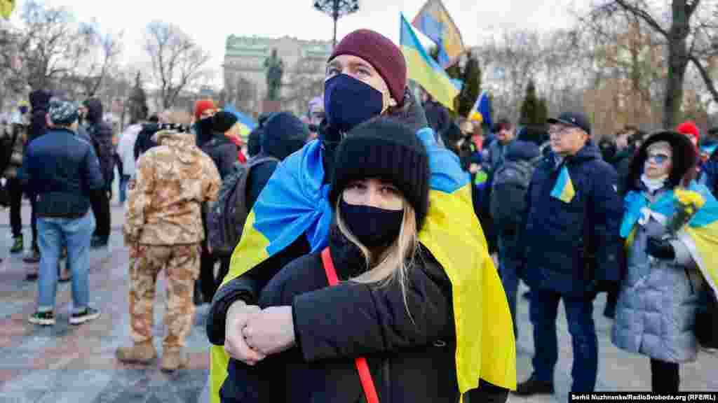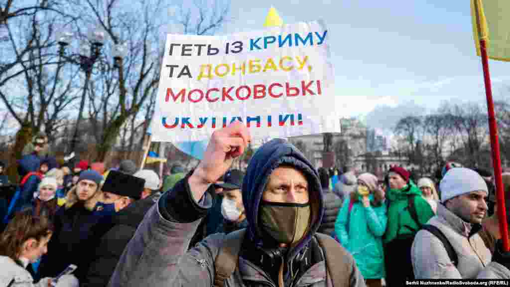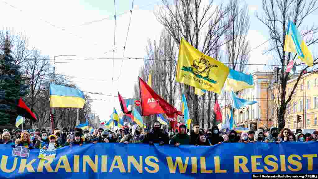 У Києві декілька тисяч людей вийшли на Марш єдності за Україну на тлі загрози нового військового вторгнення Росії на українську територію.