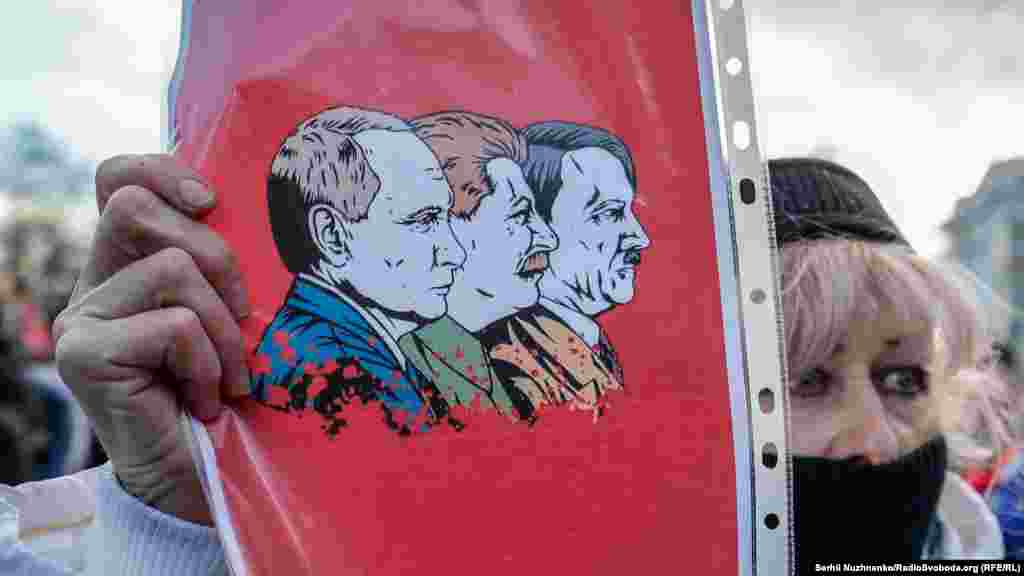 Учасники маршу тримали в руках плакати з написами Say NO to PUTIN, UKRAINIANS WILL RESIST, «Донецьк – це Україна» та інші