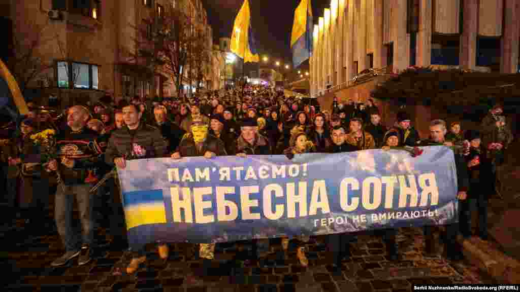 У Києві в Михайлівському Золотоверхому соборі відбулась панихида за героями Небесної сотні. Згодом близько 500 осіб пройшли ходою пам'яті центральними вулицями Києва, до Алеї Героїв Небесної Сотні, де вшанувати пам’ять загиблих учасників Революції гідності.