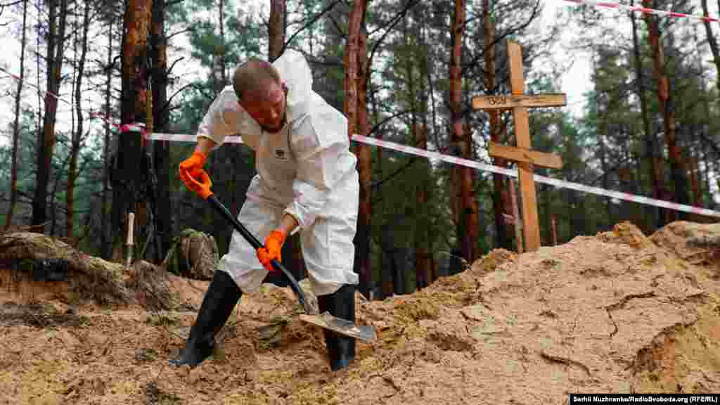 «Я тут побачив місце, де поховані військові ЗСУ. Є факти – наприклад, зв’язані руки – що їх катували і вбивали впритул», – розповів Дмитро Лубінець у коментарі Радіо Свобода на місці знайденого поховання.