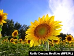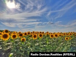 У серпні Радіо Донбас.Реалії віднайшли на околиці Донецька поле соняшників. На той момент вони якраз цвіли, й це створювало картину українського прапора, як це часто буває в українських полях. Світлини зроблені ноподалік донецького мікрорайону Бірюзова, на горизонті ви можете побачити шахту Абакумова та обриси спального району. Ми вирішили показати вам це поле у 30-річчя Незалежності, оскільки зараз це – єдиний прапор, «дозволений» окупаційною адміністрацією в Донецьку та Луганську. Понад 260 людей перебувають у незаконному ув'язненні підконтрольних Росіх сил, в тому числі, за те, що вважають Донбас – це Україна.