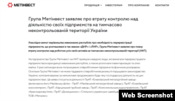 Як зазначається на сайті «ЮГМК» компанія має 7 філіалів на окупованій Росією території Донбасу.