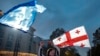 Вони вийшли на вулиці із грузинськими та європейськими прапорами та із плакатами, зокрема «Ні Росії, так Європі».