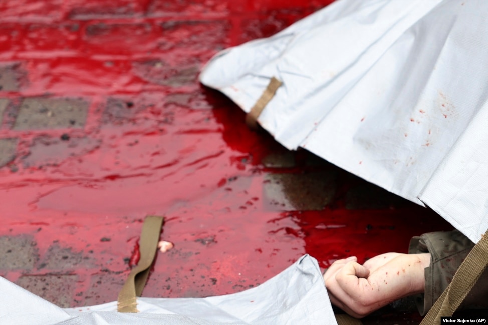 Фотограф Associated Press сфотографував руку жертви в калюжі крові.