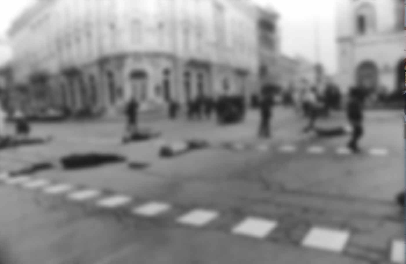 Перехрестя в місті Клуж: убиті і поранені учасники протесту проти вбивств у Тімішоарі, яких розстріляли військові. Răzvan Rotta