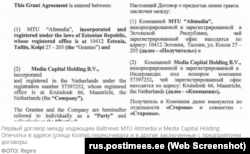 Згідно з угодою, укладеною паралельно російською і англійською мовами, фірма із Нідерландів виплачувала MTÜ Altmedia цю суму в п’яти частинах, щомісяця від 14 200 до 23 500 євро.