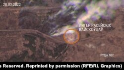 На інших супутникових знімках, зроблених 28 і 29 березня, видно, що поруч з табором, який став місцем перебування російських солдатів, були пожежі. Згідно з характером займання, було схоже на те, що горить суха трава. Навіть такі невеликі пожежі спричиняють підвищення радіаційного фону.
