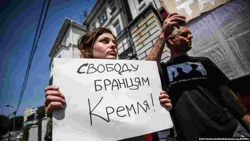 Біля консульства Росії у Києві відбулась акція «Заберіть своїх – віддайте наших». Активісти закликали обміняти затриманих в Україні російських громадян чи й українців, у яких може бути зацікавлена Москва, на українських політв’язнів у Росії.