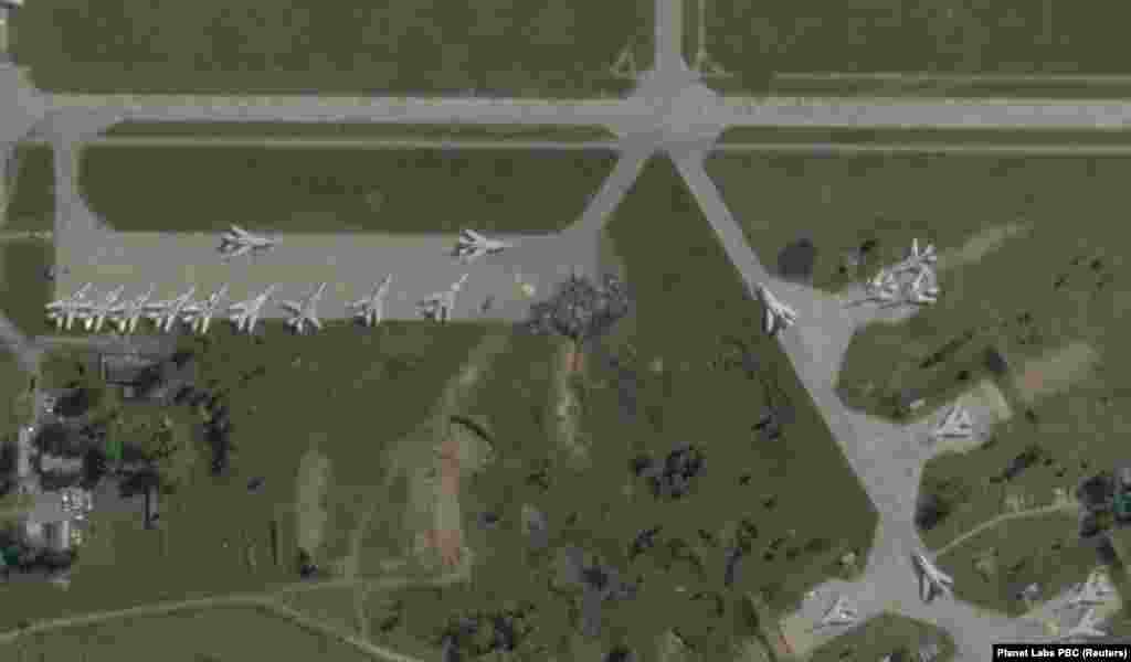 На супутникових знімках російської авіабази «Бєлая» в Іркутській області до і після удару українських безпілотників під час операції СБУ «Павутина» видно пошкоджені або знищені літаки.