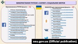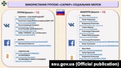 Поставлені російською розвідкою завдання група виконувала за допомогою спеціально зареєстрованих у соцмережах сторінок і проукраїнського, і сепаратистського спрямування. Для цього вони створили загалом понад 50 акаунтів і 130 груп у соцмережах, а також використовували спеціально розроблені сайти, месенджери IP-телефонії, електронні поштові скриньки, а ще розсилали листівки й СМС-повідомлення провокаційного змісту українським військовим, наголосили в СБУ.