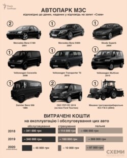 Примітно, що на обслуговування цих 20 автівок протягом останніх двох років відомство витрачало понад 2 мільйони гривень щорічно (майже 2,2 млн грн у 2018-му і понад 2,3 млн грн у 2019-му). А за січень-квітень 2020-го на це пішло майже пів мільйона.