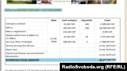 Пізніше «Схеми» звернулись до адміністрації ресторану з проханням порахувати, скільки коштуватиме відзначити свято в такому ж форматі, як 13 лютого, коли святкував Коломойський. Адміністрація надіслала нам такі дані: святкування було розраховане на сто гостей. Вартість харчування гостей та обслуговування офіціантів склала 23 тисячі 175 швейцарских франків.