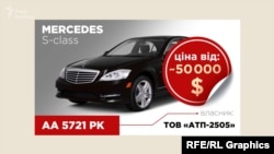 За даними джерел «Схем», номерні знаки на цьому «Мерседесі» закріплені за старим ВАЗом, що може свідчити про те, що це оперативний номерний знак або знак прикриття.
