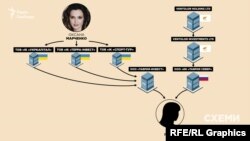Для того, щоб зрозуміти весь ланцюжок, потрібно повернутися до схем і компаній телезірки Оксани Марченко в Росії. Отже, «Схеми» виявили: невідомі кіпріоти найняли у свою фірму того ж директора, що й компанія куми Володимира Путіна, ще й назву фірмі дали подібну. І якщо додати сюди схему власності «НЗНП Трейд», то можна побачити, що ті люди, які контролюють понад 50 відсотків компанії і які добуватимуть нафту на Гавриківському родовищі – ті самі кіпрські фірми.