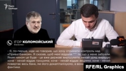 – Я, по-перше, ніде не говорив, що хочу отримати контроль над «Приватбанком». Я сказав, щоб мені віддали *** те, що у мене забрали. Яким чином це буде – це вже державі вирішувати, нехай уряд вирішує: хоче – нехай віддає грошима; хоче – нехай віддає акціями; хоче – нехай повертає весь банк, ми його докапіталізуємо, а вони заберуть свої фантики.