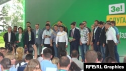 Як от під час презентації кандидатів у депутати від політичної партії «Слуга народу» перед парламентськими виборами. Тоді сам Зеленський вирішив вийти на сцену й сфотографуватися з кандидатами. Проте Андрій Богдан теж послідував за ним і став за спиною голови держави.