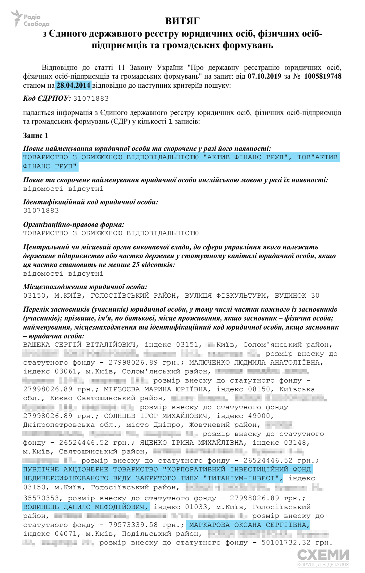 Насправді, саме ця тема ніколи не звучала у ЗМІ. Раніше були лише розслідування про купівлю Маркаровою «Актив-банку» у Клюєвих. Але до публікації матеріалу «Схем» публічно не було відомо, що напередодні банкрутства банку Маркарова вивела з нього цінний актив – великий будинок на Подолі – на свою фірму. Це для суспільства – нова інформація.