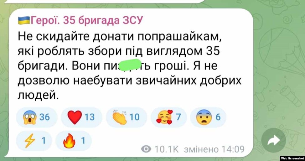 Бекап у вигляді фейкового каналу української бригади