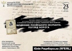 Виставка одного експонату «Щоденник російського окупанта. Погляд ворога» триватиме до 1 березня у приміщенні комунального закладу «Музей спротиву Голодомору» Дніпровської міської ради. Відвідування – за попереднім записом.