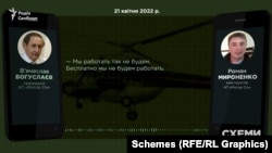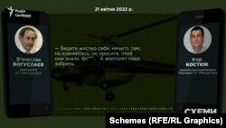У розпорядженні «Схем» є лист, підписаний Богуслаєвим. У травні минулого року він скаржився міністру оборони Олексію Резнікову на примусове вилучення розвідниками декількох гелікоптерів. І стверджував, що використовувати їх не можна. Ризиковано для життя. Один із гелікоптерів, про які йшлося в листі за особистим підписом Богуслаєва – Мі-24.