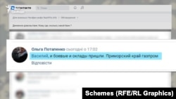 Зрештою, на запитання одного із користувачів «Вконтактє» щодо нарахування «бойових» за участь у так званій «спецоперації», підтверджує: «И боевые, и оклады пришли. Приморский край, Газпром».