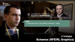 «Я тебе почув. А що зі статусом твого товариша, якого ми хочемо туди відправити? Зі статусом, що він суддя? Що із статусом Солодкова? А, ну, добре. Коротше, все у нас добре», – казав на цих записах Вовк, ймовірно, розмовляючи з Портновим.