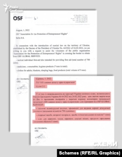 «На підставі наданої інформації ми виявили певні деталі, які вказують на те, що «лист», яким OSF Global Services запитувала дозвіл на перетин кордону волонтерами ГО «Обʼєднання захисту прав підприємців», є підробкою. Серед цих деталей – застарілий бланк, відсутність реєстраційного номера та нерозбірливий підпис», – відповів Радіо Свобода Алін Доробанту.