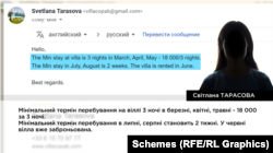 «Мінімальний термін перебування на віллі 3 ночі в березні, квітні, травні – 18 000 євро за 3 ночі. Мінімальний термін перебування в липні, серпні становить 2 тижні. У червні вілла вже заброньована», – відповіла менеджерка.