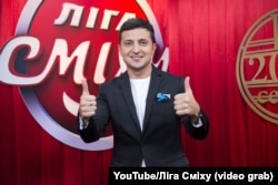 Зеленський був одним із засновників та постійним ведучим турніру коміків «Ліга Сміху» впритул до свого висування у президенти.
