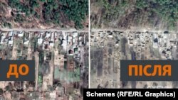 Журналісти проєкту Радіо Свобода «Схеми» обрали декілька знімків із космосу, щоб побачити різницю між тим, як виглядали міста чи селища до 24 лютого 2022 року та після. Одні населені пункти зруйновані частково, інші – майже повністю стерті з лиця землі.