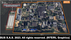 Журналісти «Схем» проаналізували супутникові знімки території підприємства за 2021-2023 роки та помітили, що за цей період поруч із заводом з’явилась велика будівля. Її почали зводити у 2021-му році, а добудували, судячи з супутникових фото, вже у цьому році. Поруч також обладнані два гелікоптерні майданчики. У цієї будівлі з територією Дубнянського машинобудівного заводу – спільний заїзд.