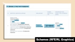 Натомість, як чиновник вказує у декларації, того року два мільйони гривень його дружині подарувала її мати та ще майже три мільйони її бабуся, якій на той час був 91 рік.